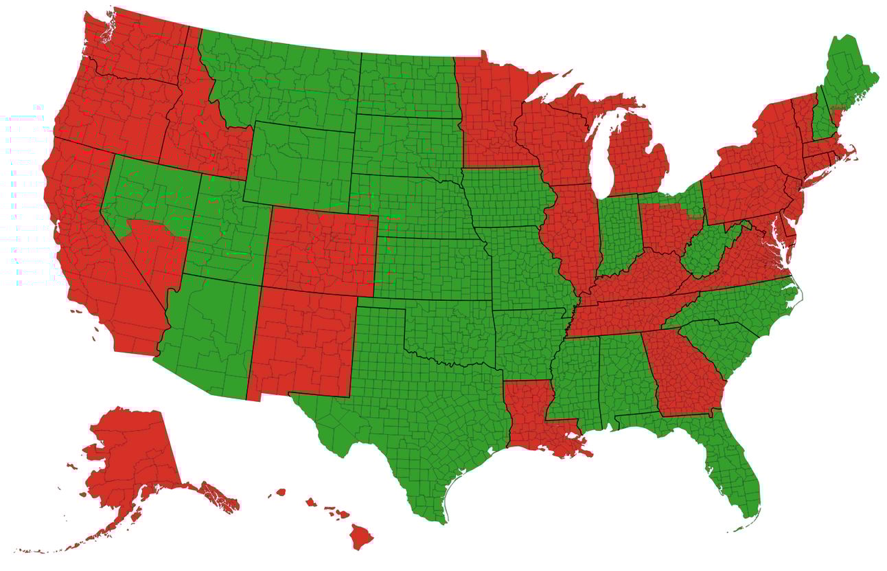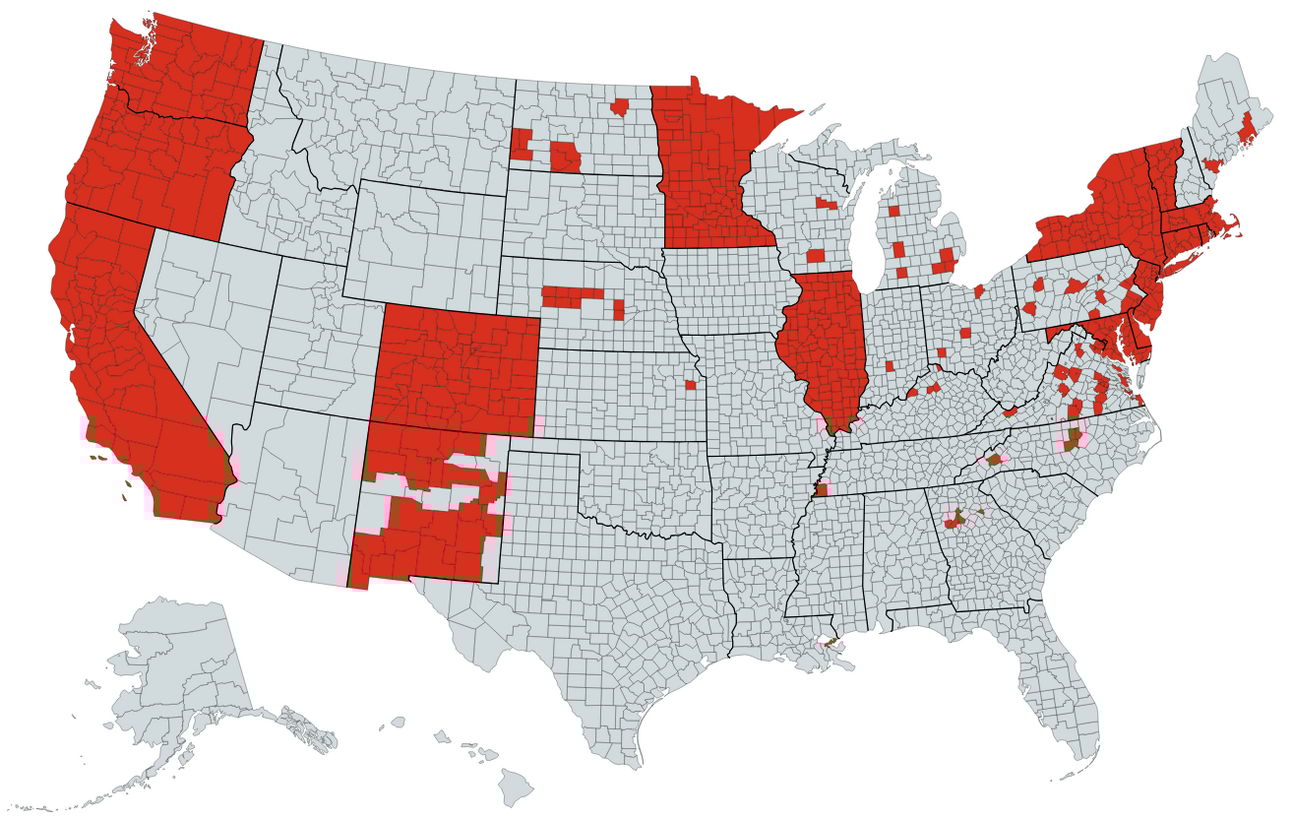 For now, the bill doesn’t have an official set of offending locales, so the only option is to use the initial list. It’s a bit awkward to just post the spreadsheet I made, so here’s a map instead.